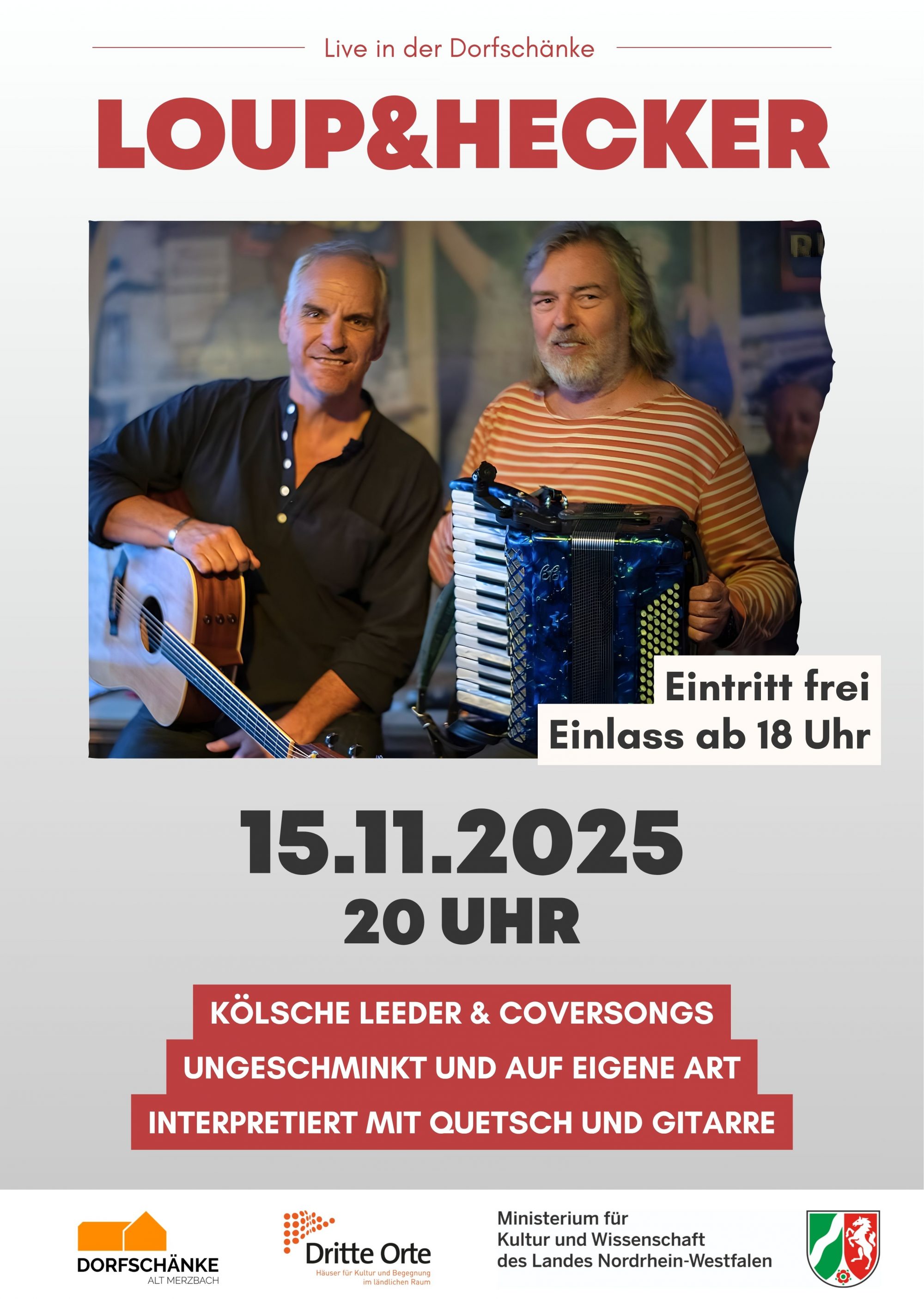 Livemusik in der Dorfschänke Wann 15. November 2025 18:00 - 22:00 Zum Kalender hinzufügen ICS herunterladen Google Kalender iCalendar Office 365 Outlook Live